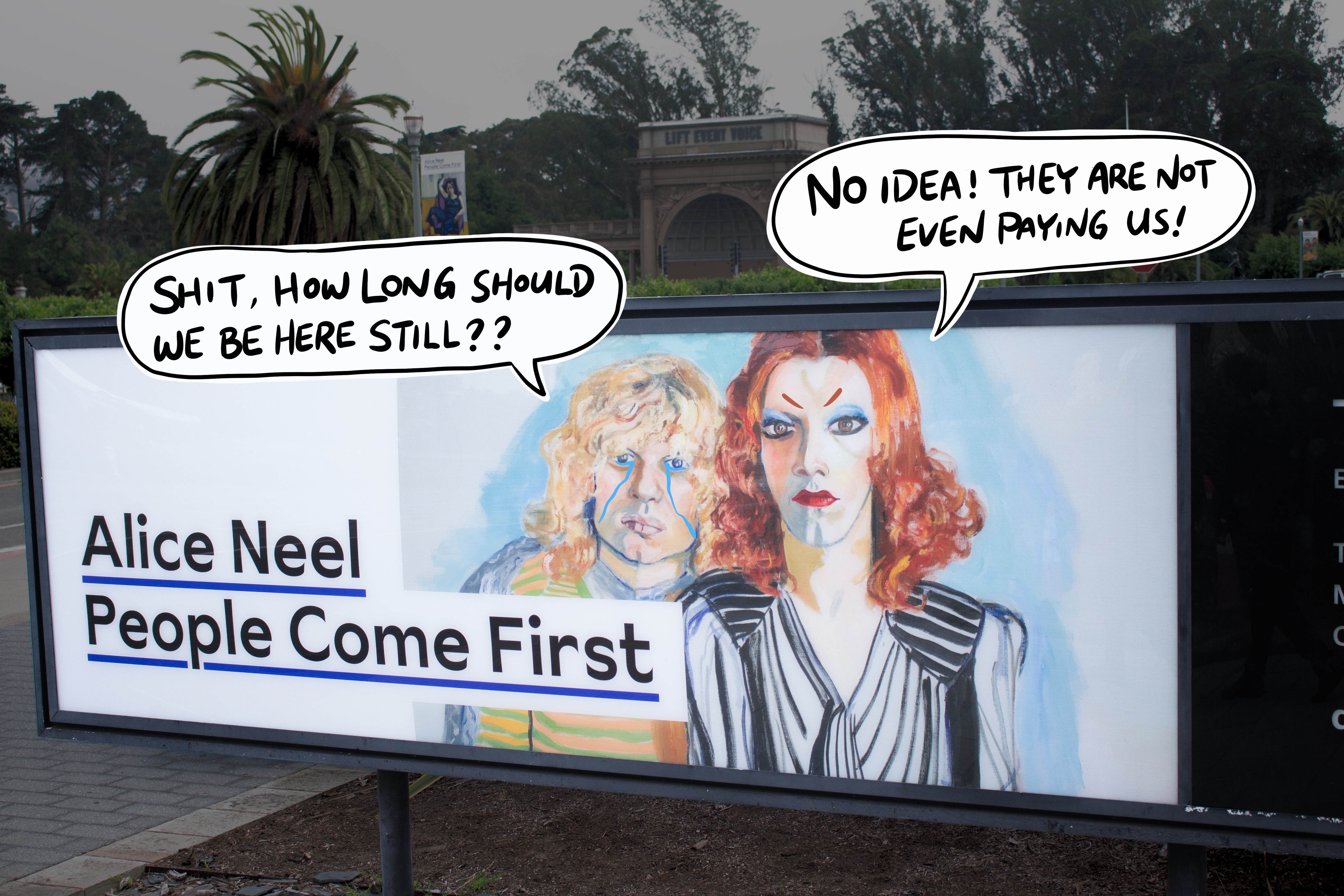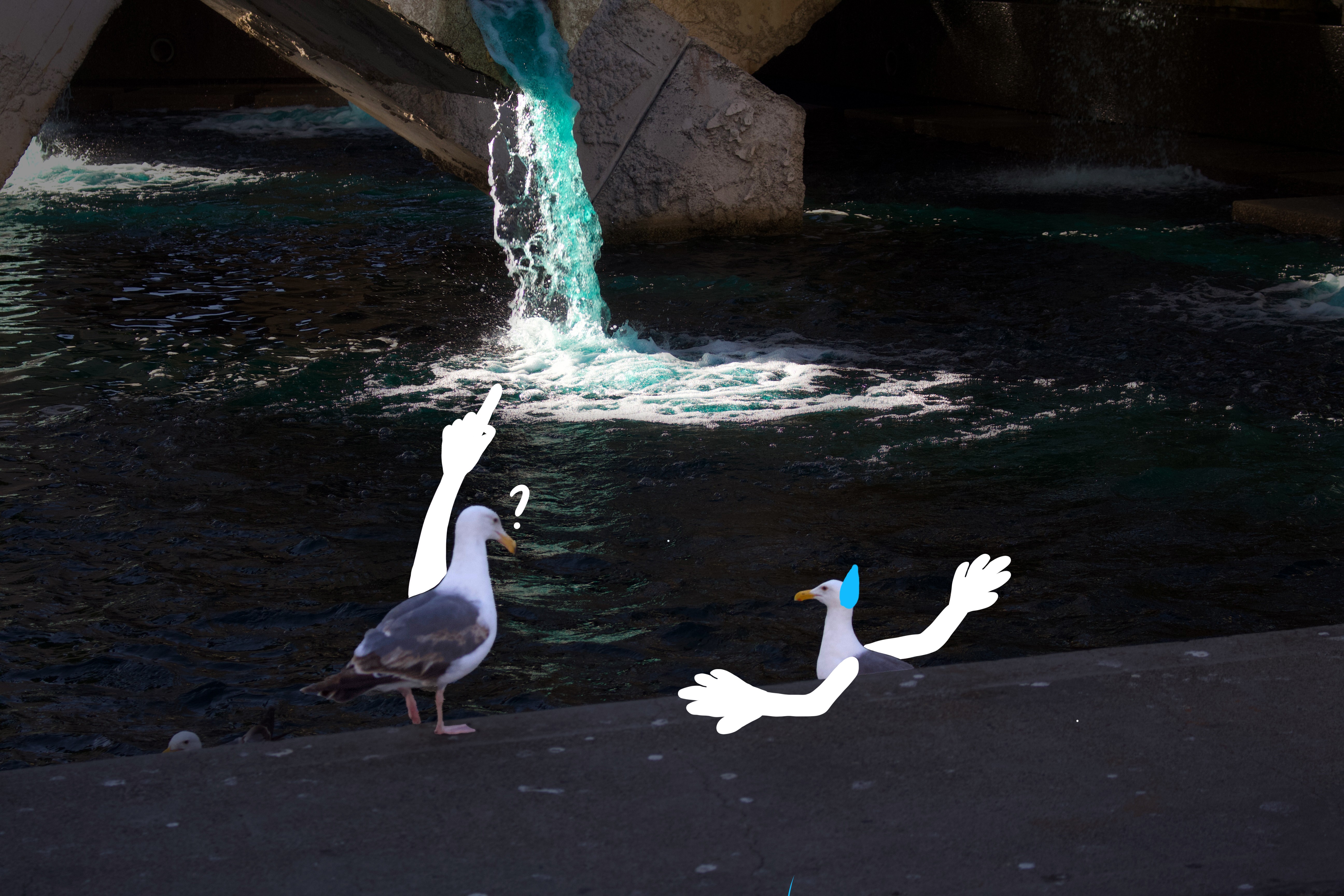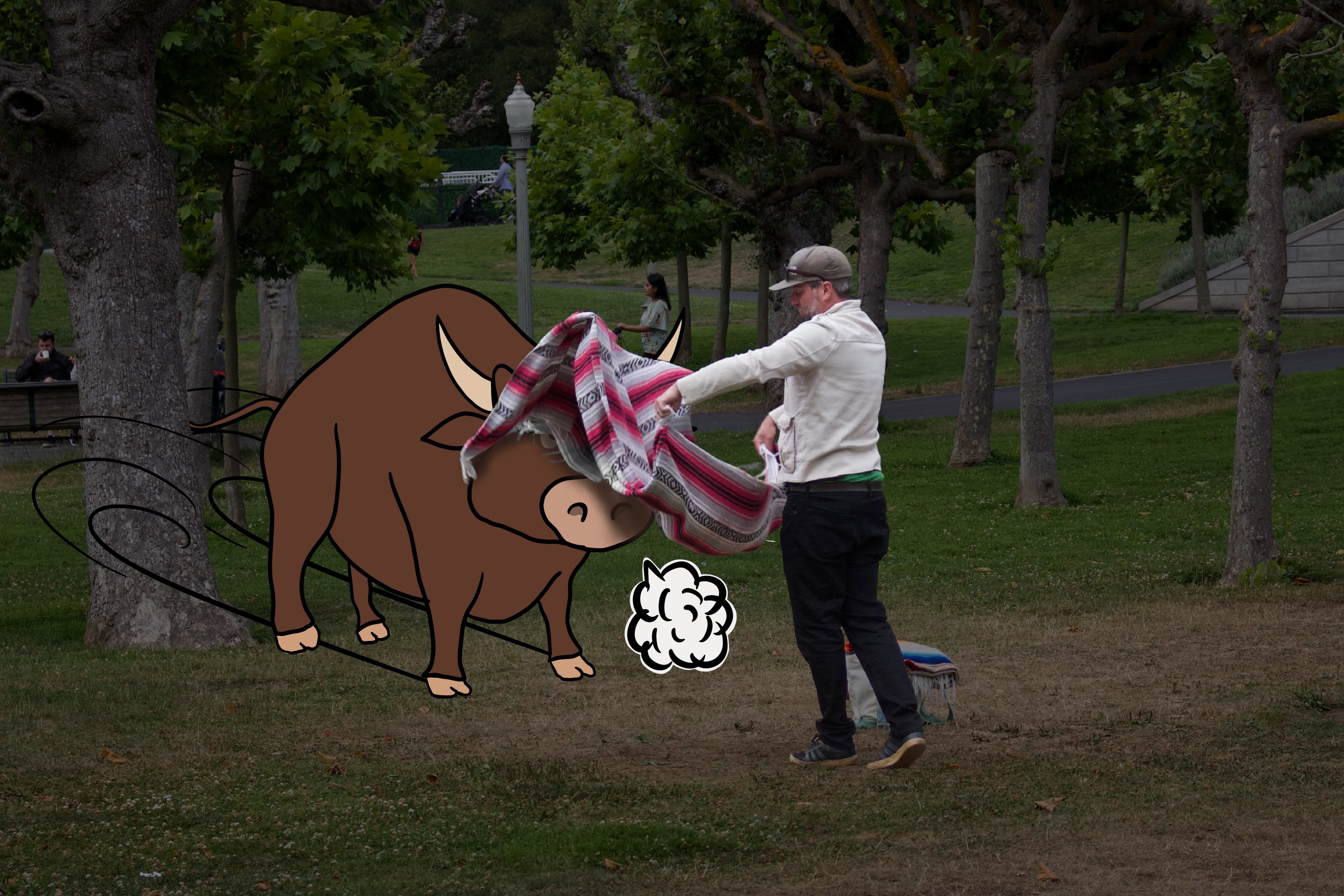 I focused on capturing moments with expressions, motion, or compositions that leave space for alternative interpretation. I tried to observe strangers, animals, or simply the landscape around me. Then I deconstructed and reinterpreted each scene while adding annotations such as conversation bubbles, “emissions,” and facial elements that clearly match each scene but at the same time are definitely not what the figures are doing or thinking right then. This method creates tension in everyday life and would induce either a quiet chuckle or a burst of relishing laughter.